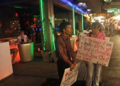 It made me quite happy that we had to walk down convent street to reach the red light district. I'm also curious about who goes to the dental clinic next to Super Pussy. I'm not sure how effective the anti-gay literature the sandwhich board christians were handing out is. I don't remember seeing many gay guys on the street entirely devoted to vaginas. "Jesus said Surely I come quickly"...not sure if this guy is protesting against or advertising for a sex show...if I had gone to one, it definitely would have been the one that made jesus come quickly.